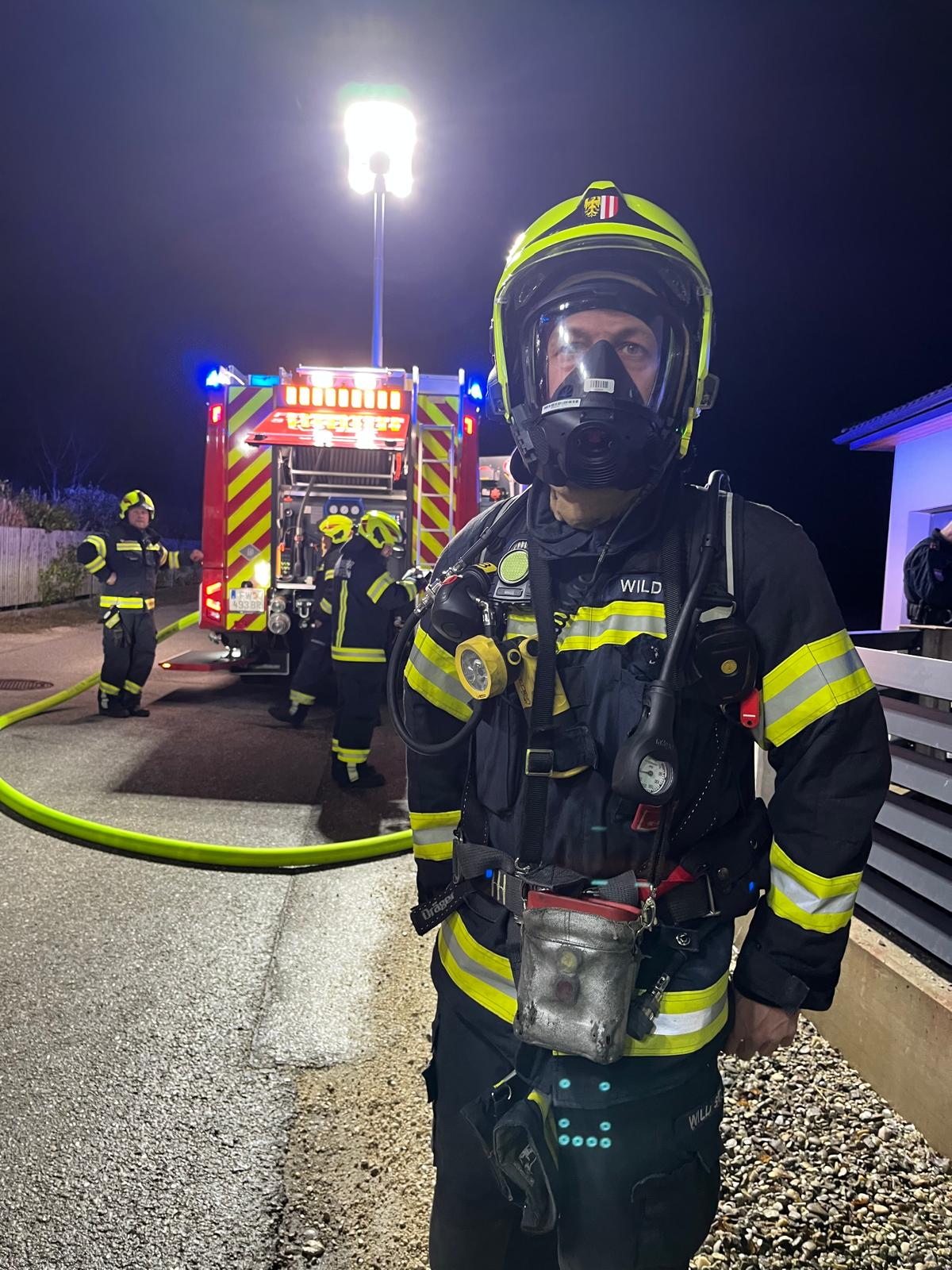 Bereits während der Anfahrt rüstete sich ein Trupp mit schwerem Atemschutz aus. Nach dem Eintreffen am Einsatzort brachten wir im ersten Obergeschoss einen Lüfter zur Unterstützung der Belüftungsmaßnahmen in Stellung. Das vom Atemschutztrupp der FF Stallhofen aus dem Gebäude verbrachte Brandgut wurde anschließend mittels C-Rohr abgelöscht. Weitere Tätigkeiten unsererseits waren nicht erforderlich.
