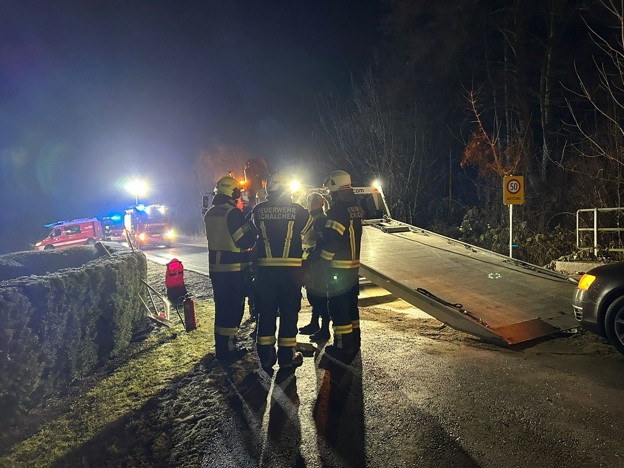 Am Samstag um 01:41 Uhr wurden wir gemeinsam mit der FF Furth-Unterlochen zu Aufräumarbeiten nach einem Verkehrsunfall in Unterlochen alarmiert. Die Polizei war bereits vor Ort. Aus unbekannter Ursache dürfte das Fahrzeug ins Schleudern geraten sein. Von unserer Seite wurden die ausgelaufenen Flüssigkeiten gebunden sowie die Straße abgesichert und gereinigt. Nachdem der Abschleppdienst das Fahrzeug abgeholt hatte, konnten wir nach etwa einer Stunde wieder ins Zeughaus einrücken.