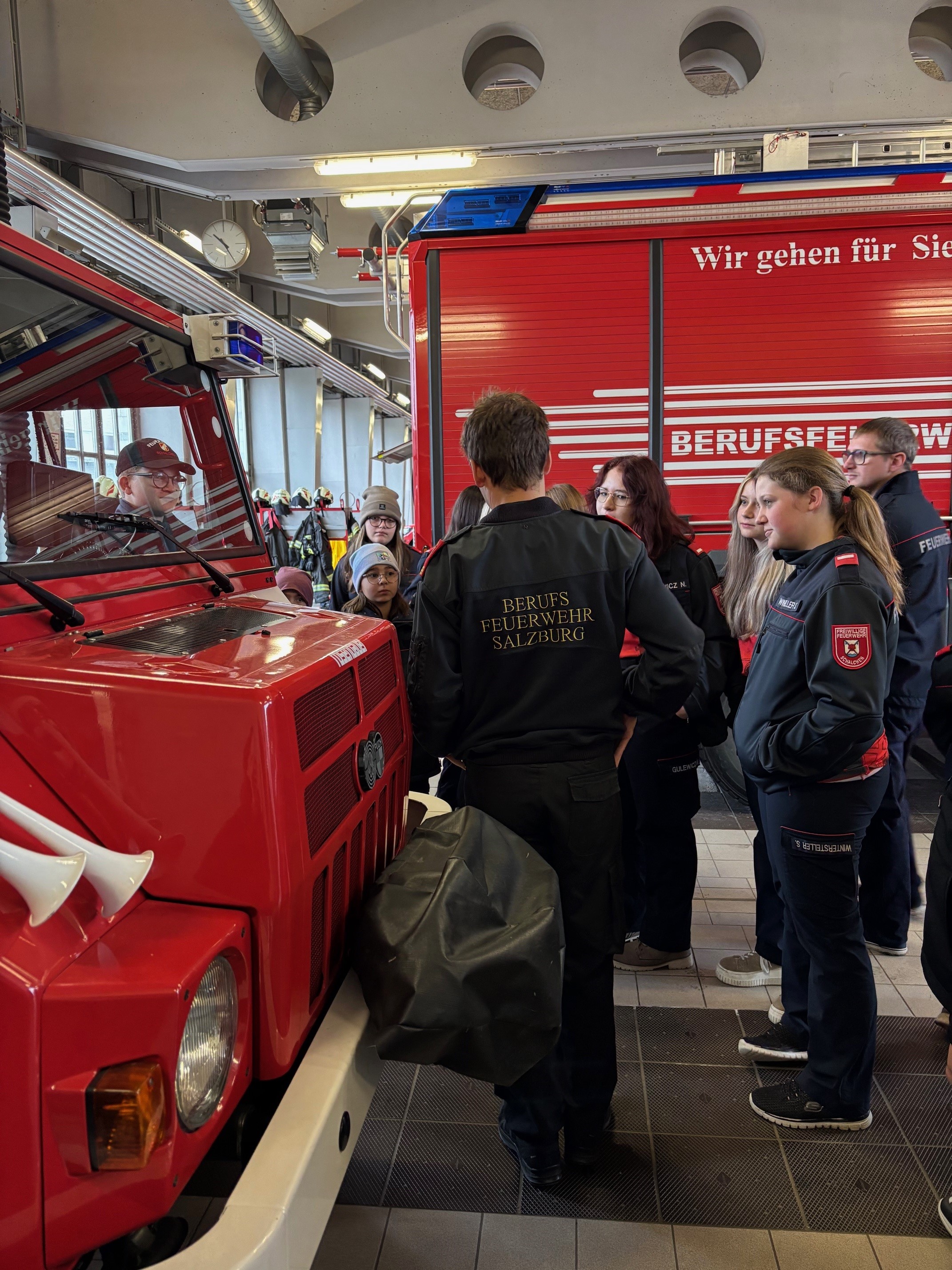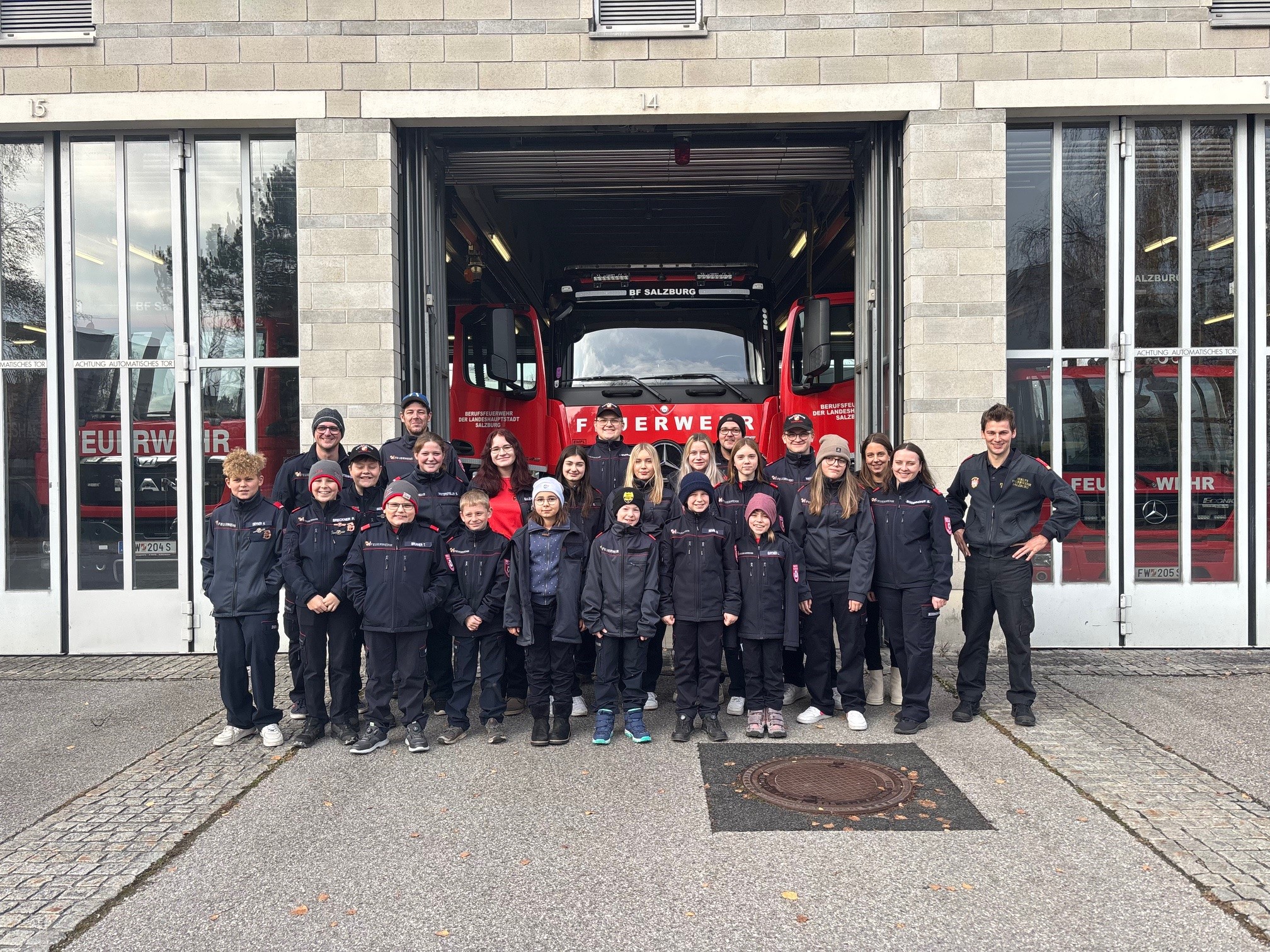 Dieses Mal ging es mit 18 Kindern und 5 Betreuern nach Salzburg zur Berufsfeuerwehr, wo wir einen spannenden Einblick in den Feuerwehralltag bekamen. Nach einer kurzen Präsentation wurde uns der Imagefilm gezeigt, anschließend ging es in die Fahrzeughalle, wo uns die vielen verschiedenen Einsatzfahrzeuge ausführlich erklärt wurden.